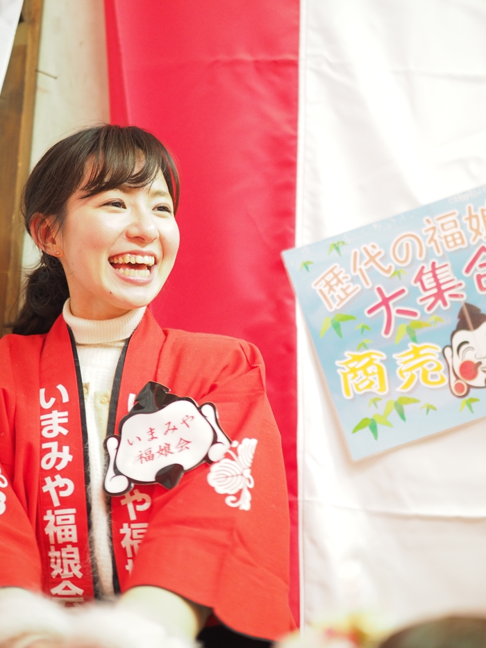 うつくしいひと 福娘 2019_01今宮戎いまみや福娘会 2019年2月1日 Facebook postはてブLINE 通う年数が多くなるごとに楽しみになるのが、いまみや福娘会。 いまみや福娘会というのは、福娘OG、つまり歴代の福娘が加入している会の事です。 つまり、もしかしたら去年一番可愛かったあの福娘に会えるかも!という何ともうれしい会なのです。 とはいえ、名前のわからない方が大半なので、わかる方はぜひコメントをお願いします。 それでは早速ご覧いただきましょう。 左はちあきさんです。 Facebook postはてブLINE