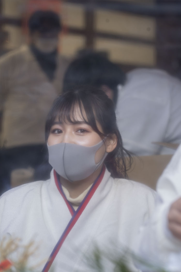 うつくしいひと 福娘 2021_01今宮戎福娘 えびす娘 2021年4月4日 Facebook postはてブLINE まさかこんな世の中になるとは思いもよらず。 そしてマスクは想定していたものの、ビニールシートまであるとは。さすがにビニールシートはカメラとの相性が悪すぎますね。 後から聞くと、撮影時のみ一周ビニールシートをよけるのは各娘さんの裁量次第だったみたいですが、 それでもマスクだと本当に誰がだれかわかりません。 もしわかる方いらっしゃったらコメントをお願いします。 この方だけは面識あるのでわかります、福永愛莉さんです。 Facebook postはてブLINE